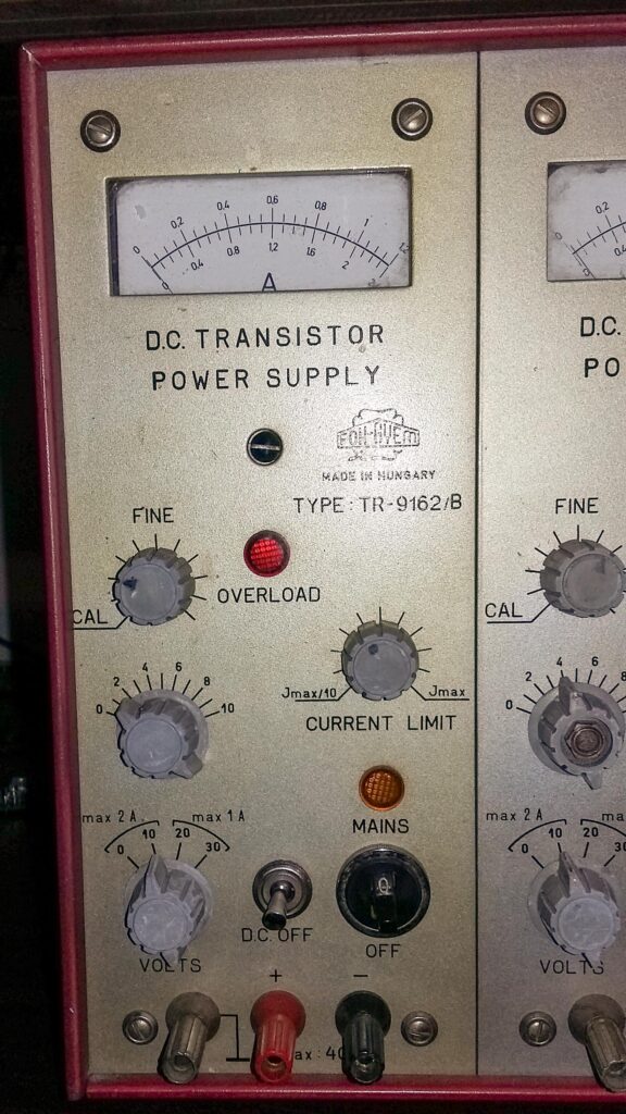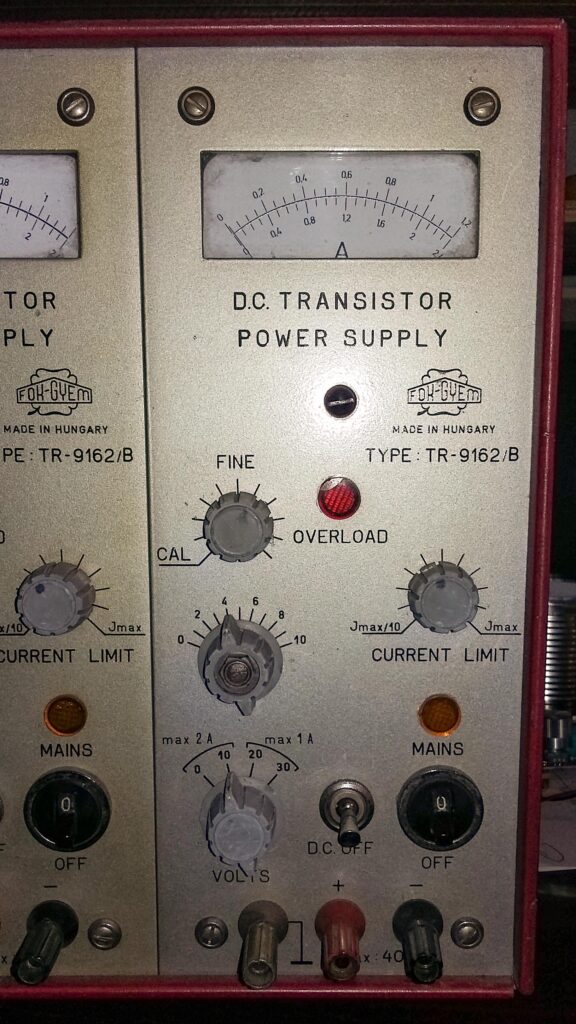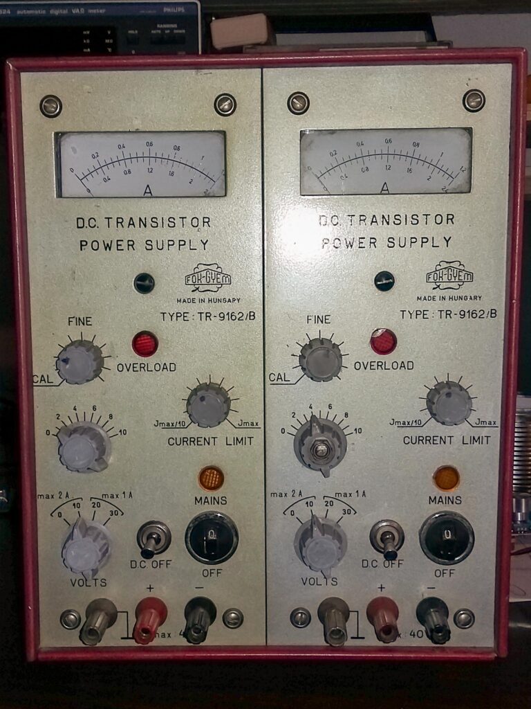 Fok-Gyem, Műszer, Tápegység, TR-9162B Fok-Gyem TR-9162B kettős tápegység augusztus 13, 2017 Típus:TR-9162BGyártó neve:Fok-GyemGyártási év:1971Kivitel:AsztaliCső / félvezető / IC:TranzisztorSorozatszám:Kapcsolási rajz:Megvan letölthetőMegjegyzés:Méretek: 220 x 280 x 336 mmFeszültség / Áram: 0 – 20V 2A, 20 – 40V 1AA készülék saját tulajdonom. Minden bemutatott fotót én készítettem.Továbbközlés csak forrásmegjelöléssel! Kapcsolási rajzot innen lehet letölteni: fok-gyem_tr9162bLetöltés Előző EMG Q-meter EMG-1821 (TR-9601) Legújabb OMSZÖV OE-712 Hármas tápegység Ezeket is érdemes megnézni HT TR-4203 oszciloszkóp október 3, 2024 HT multiméter, TR-1698 / V015 november 11, 2016 TEL-MES RLC MESSBRÜCKE TR-2152 augusztus 2, 2018