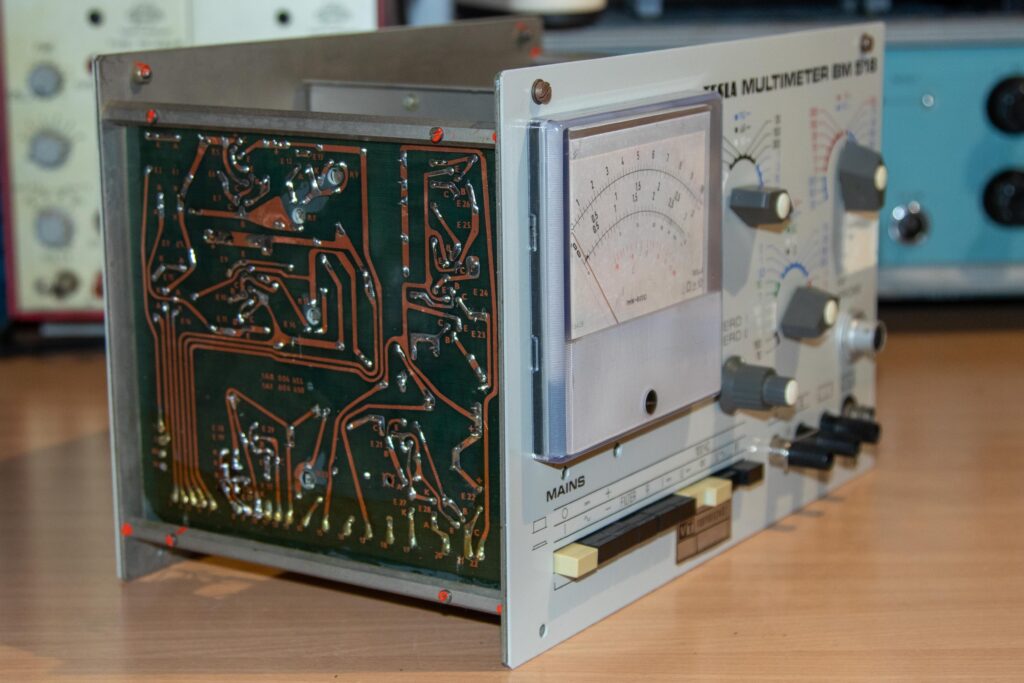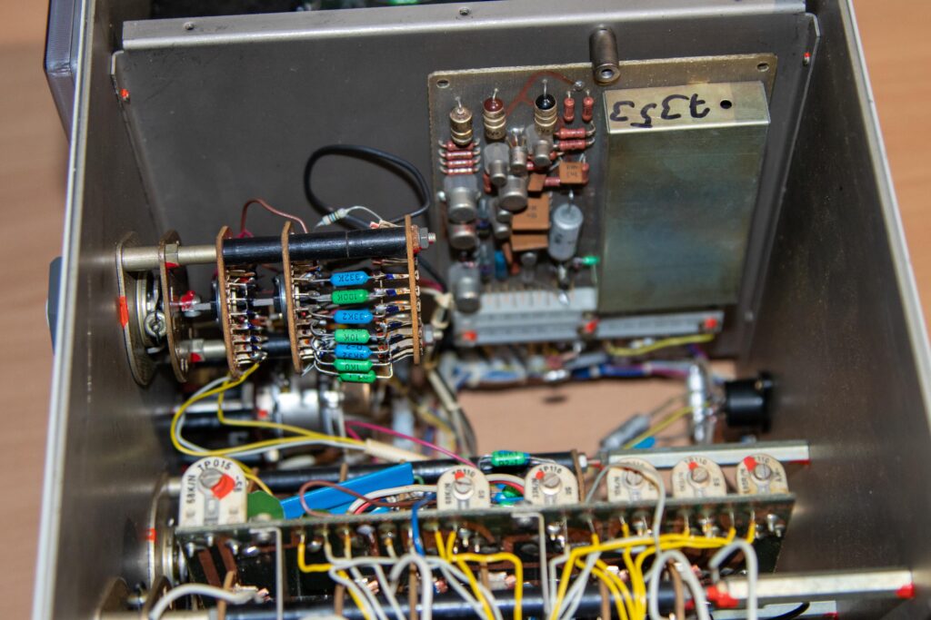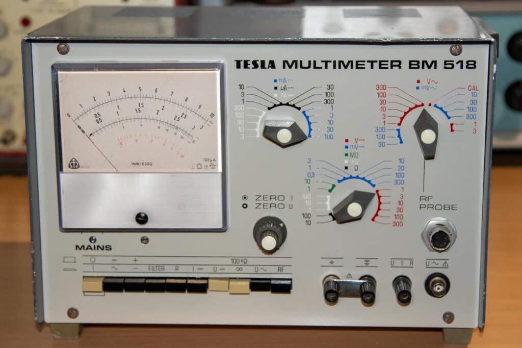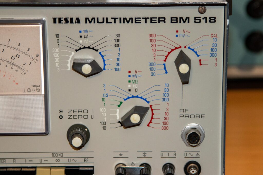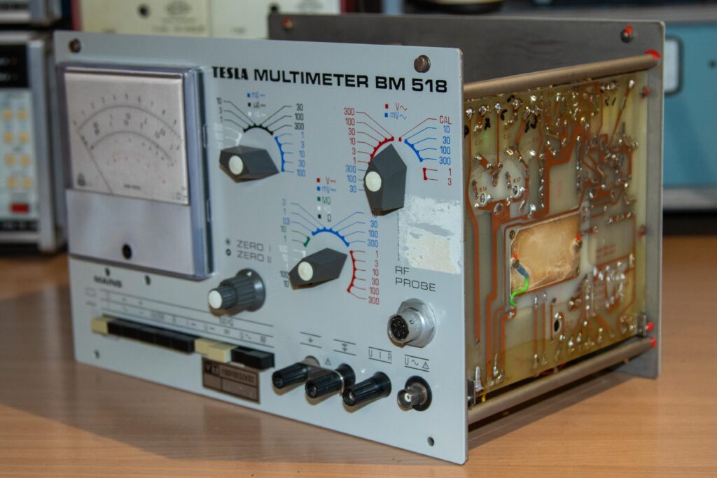 BM-518, Multimeter, Műszer, TESLA TESLA BM-518 Multimeter október 22, 2022 Típus:BM-518Gyártó neve:TESLAGyártási év:1975Kivitel:Asztali műszerCső / félvezető / IC:Tranzisztor, diódaSorozatszám:CIS 410586Kapcsolási rajz:Megvan, letölthetőMegjegyzés:Méretek: 315 x 210 x 226 mm,Made in CzechoslovakiaA készülék saját tulajdonom. Minden bemutatott fotót én készítettem.Továbbközlés csak forrásmegjelöléssel! Innen töltheted le a dokumentációt: tesla_bm518_analog_multimeterLetöltés Előző TESLA BM-509 RLC mérőhíd Legújabb Orion 420A rádió Ezeket is érdemes megnézni G4-107 orosz szignálgenerátor augusztus 28, 2024 Fluke 1900A Multi – Counter január 5, 2015 Fok-Gyem TR-9162B kettős tápegység augusztus 13, 2017